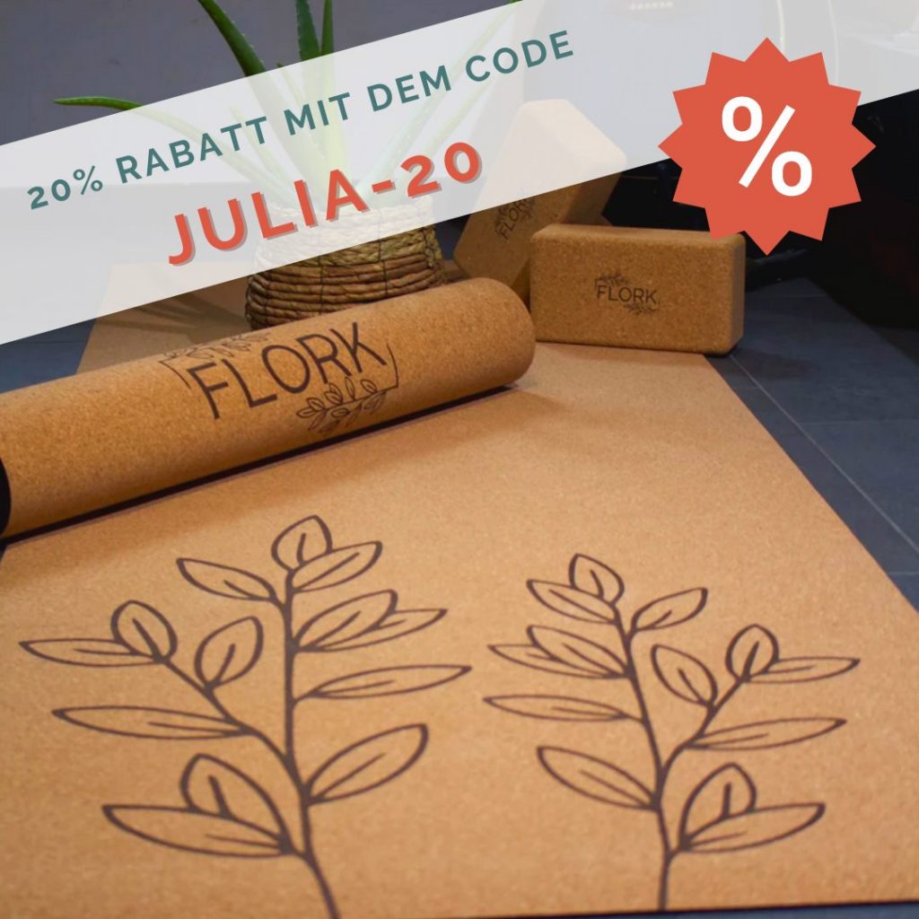 Mit einer Oberseite aus Kork und veganem Naturkautschuk auf der Unterseite, vereint die FLORK Yogamatte ALLES was DU dir von einer Yogamatte wünscht.